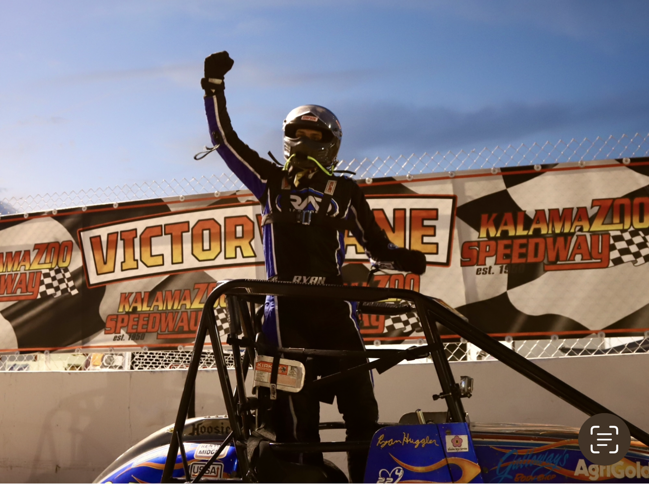 Ryan Huggler in victory lane at Kalamazoo Speedway (Aaron Skillman photo)