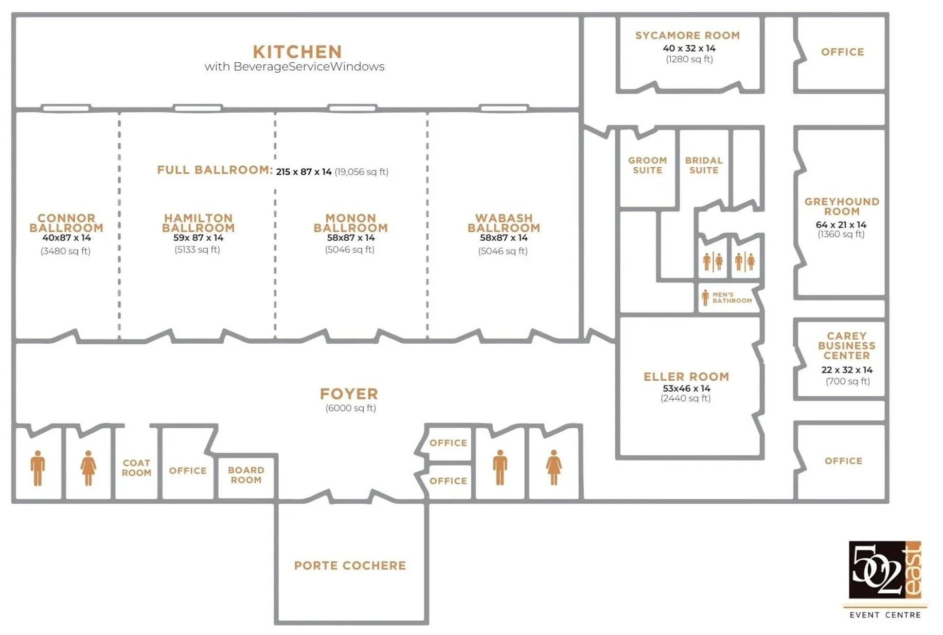 Please enter the event center through the front doors. Once you enter the doors turn right. They will have TV's giving directions to the appropriate room. A map is included of the event venue. The main room is the Eller Room.