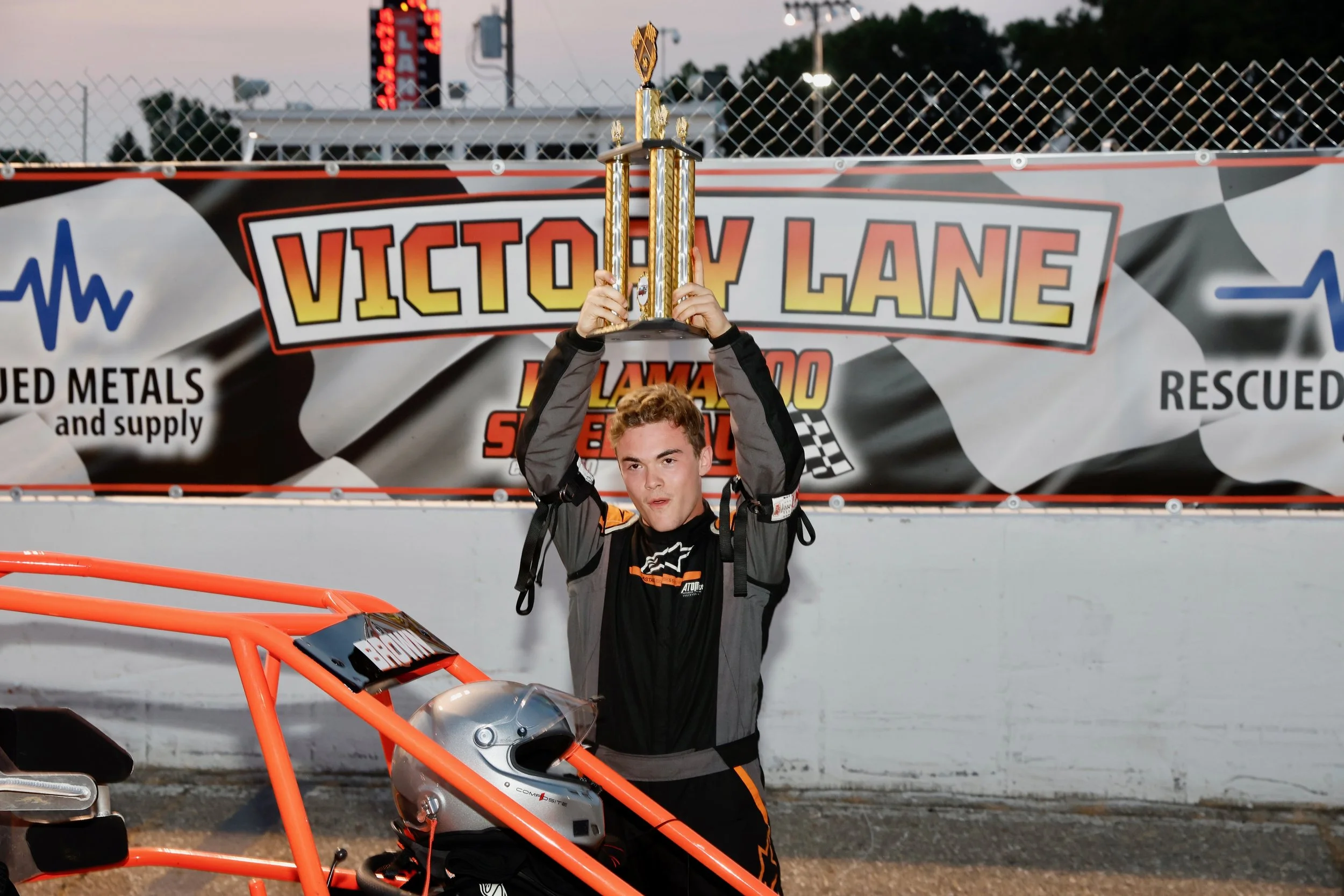 After missing the first four races of the 2025 season, due to a back injury he suffered at the Fort Wayne Rumble, Landon Brown turned in an impressive performance in winning for the first time in a Kenyon Midget.