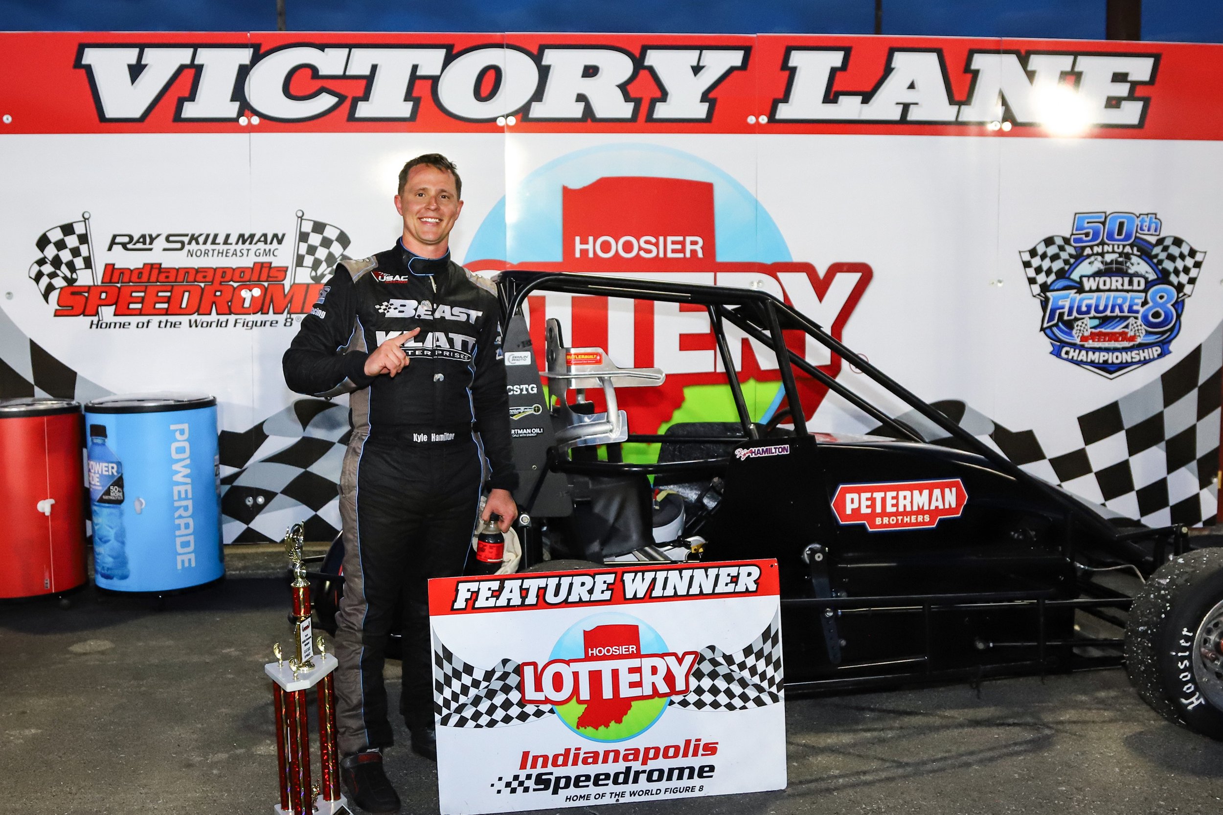 INDIANAPOLIS – Veteran competitor Kyle Hamilton scored a clean-sweep in Kenyon Midget action at the Indianapolis Speedrome.