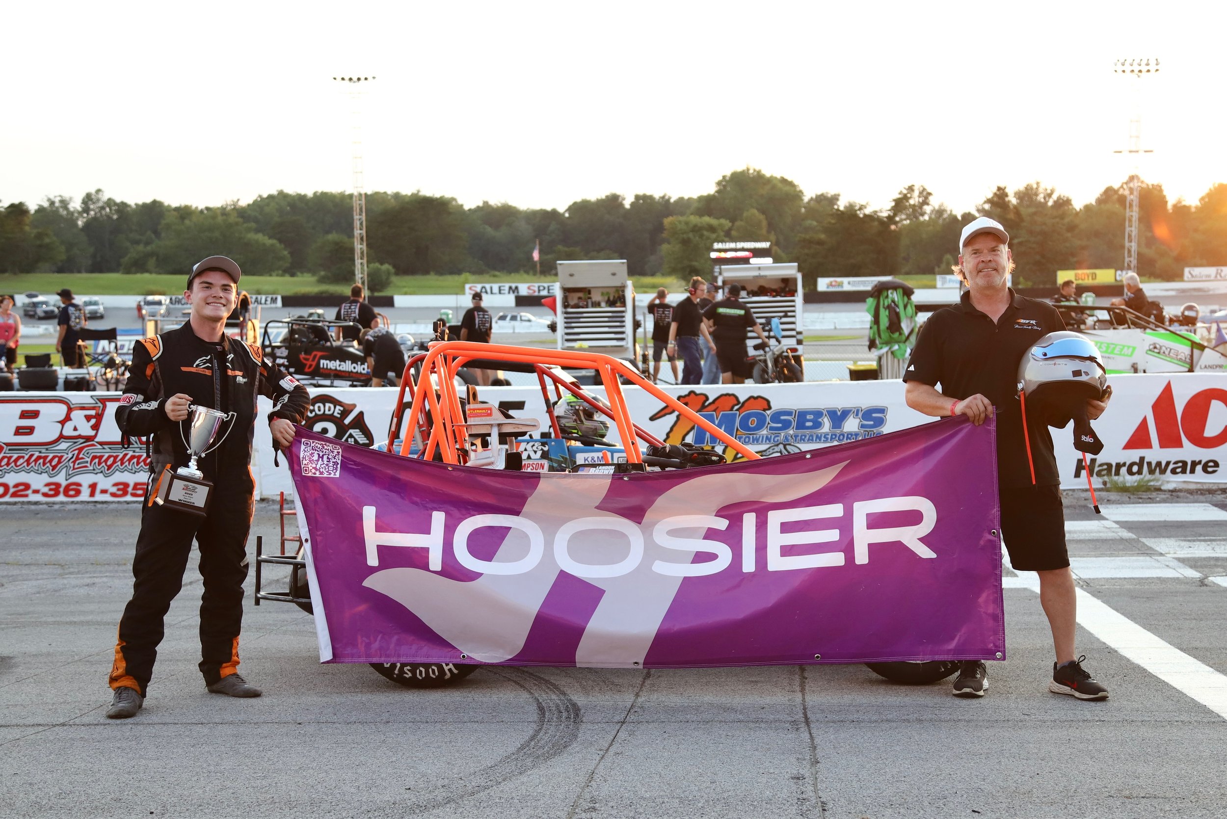 At the Salem Speedway oval Brown scored his second career win and almost pulled off a sweep of the two events. Brown started from the pole position in the first feature event with Dameron Taylor on the outside with Trisdon Brown and Kyle Sheard in the second row. The initial start came under the yellow flag for a spin by Clayton Gaines and the second attempt was called back.